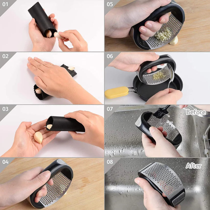 Our Stainless Steel Garlic Press Gives You Perfectly Crushed Garlic in One Simple Press, Saving Time And Keeping Your Kitchen Clean.